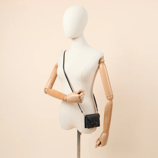 Prada Cross Body Saffiano Crossbody - Mini in Black, Calfskin